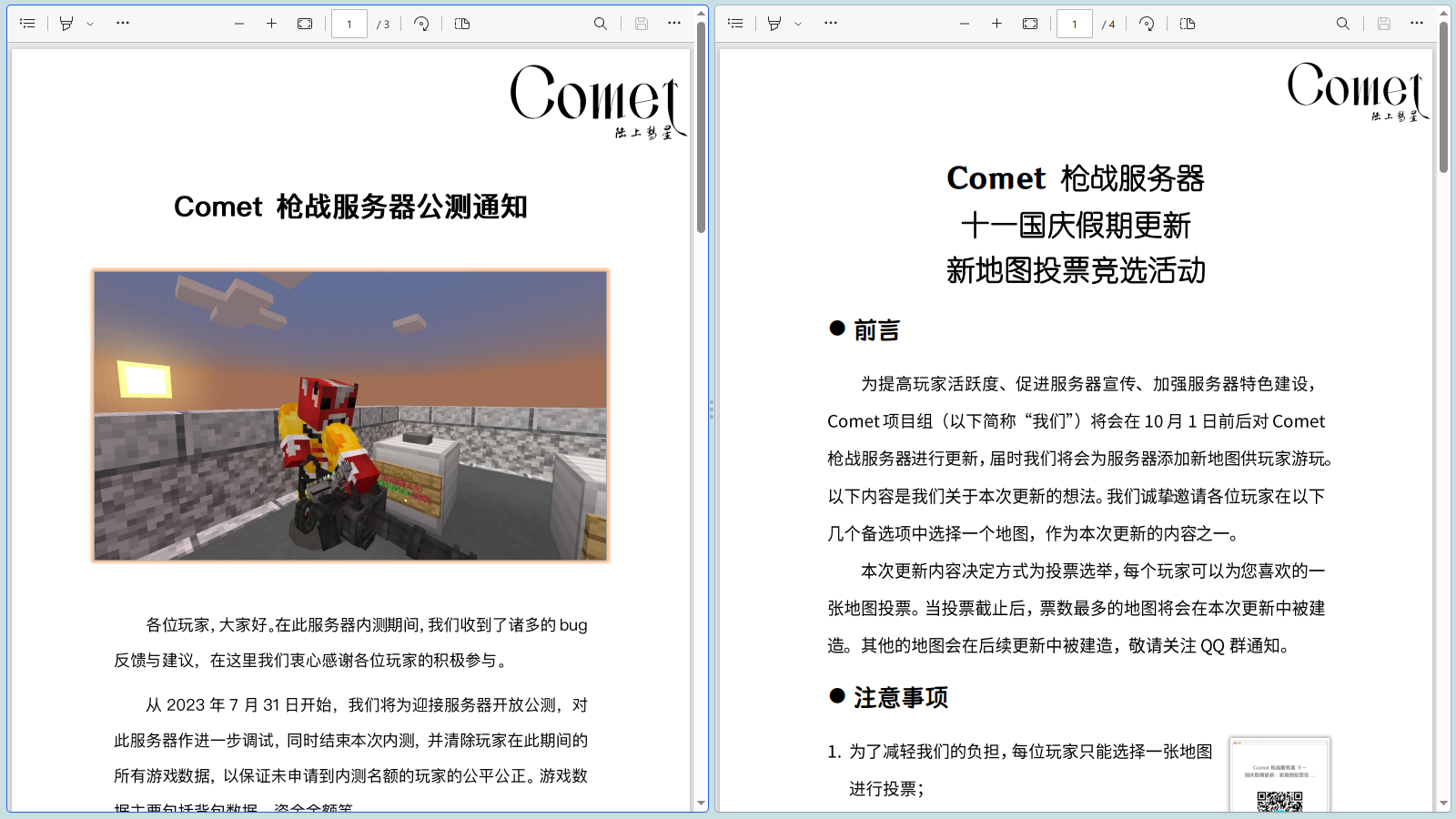 Comet 枪战服务器的一些历史通知,文件均保存在群文件中