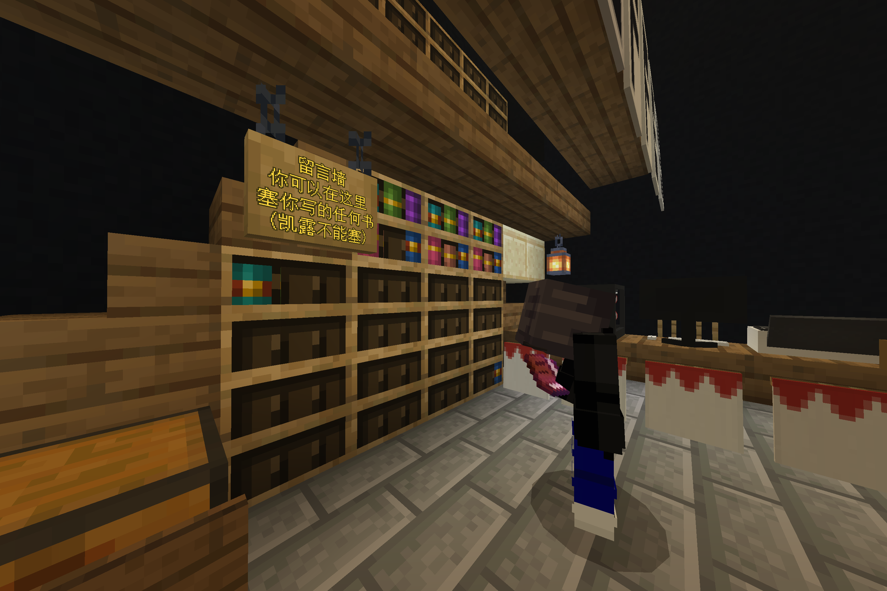 服务器休闲区,玩家正在为留言墙撰写书籍
